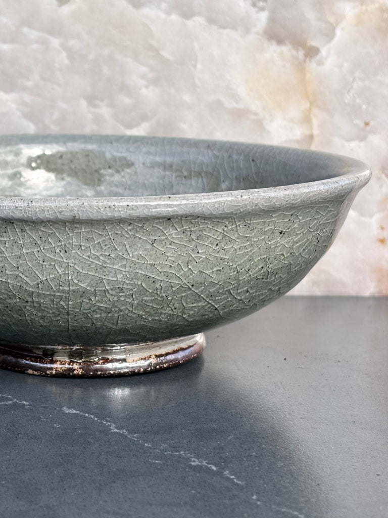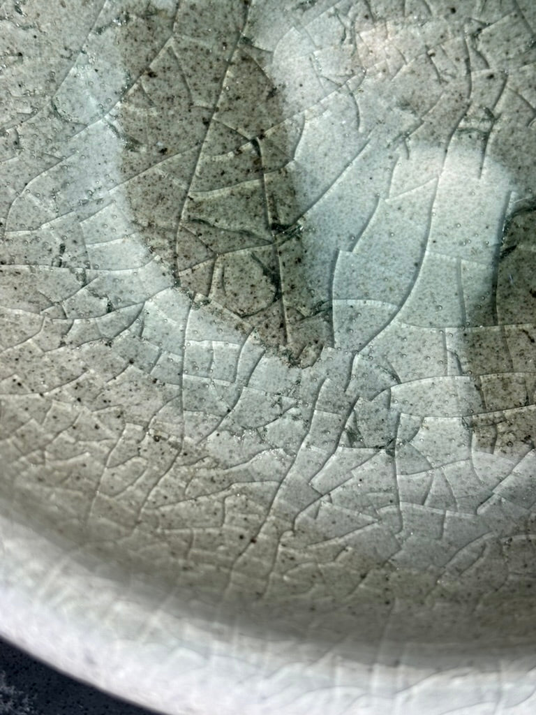 Pale blue/green and milky white celadon glaze bowl. Another very pretty new glaze combo that is tricky to photograph! But it's very pretty!